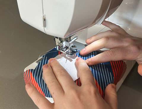 Stitch along the border of the cutout. Leave the area highlighted in the photo unstitched.